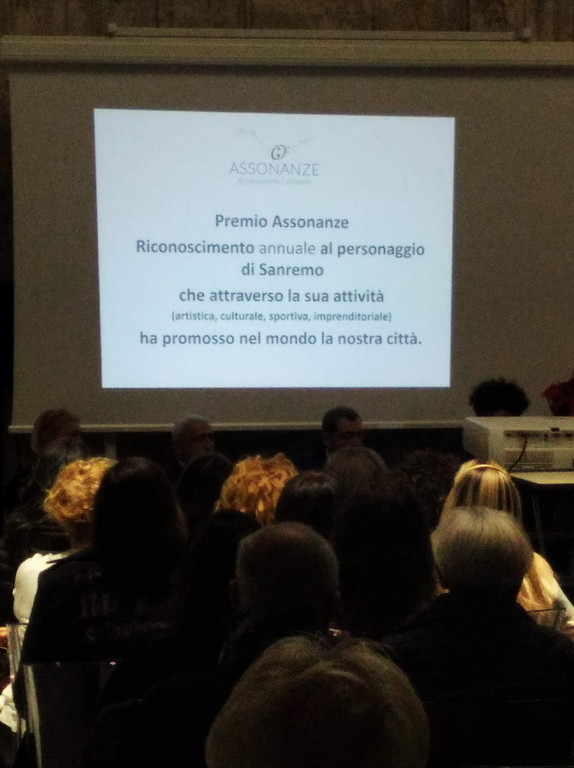 Inoltre, verrà istituito il 'Premio Assonanze', che intende dar luce e merito a quelle personalità che si siano distinte e che abbiano portato lustro alla città di Sanremo, nel campo dell’imprenditoria, della sanità, del commercio, del giornalismo, delle forze dell’ordine. Tutti coloro che condividono le finalità e vorranno sostenere le attività dell’associazione potranno farne parte, senza alcuna discriminazione di ordine politico, religioso o ideologico.