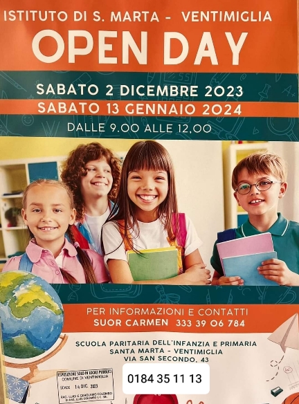 E' tempo di decidere quale scuola sia la migliore per il proprio figlio. Per questo l'Istituto paritario Santa Marta a Ventimiglia (in via San Secondo 23), ha organizzato l'open day per domani e sabato 12 gennaio dalle 9 alle 12.