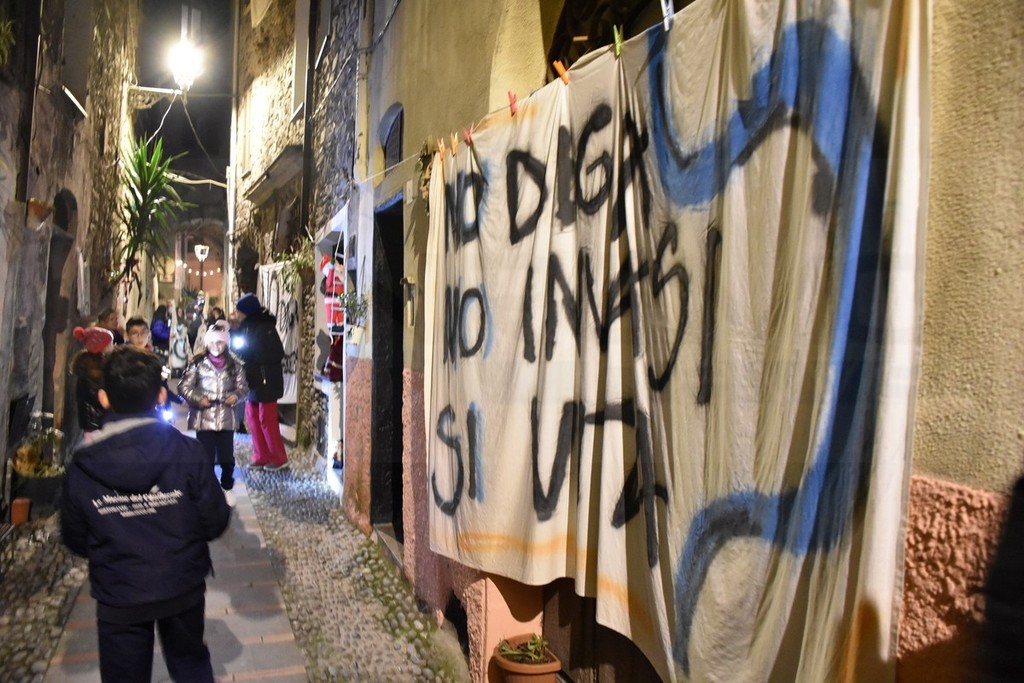 L’estate scorsa era una bella e fresca serata mentre oggi i partecipanti hanno dovuto sfidare il pungente freddo di dicembre per dire il loro secco ‘No’ alla eventuale costruzione di una diga sul torrente come prospettato alcuni mesi fa. Circa 500 persone, sia del piccolo centro della Valle Argentina che degli altri paesi vicini, si sono radunate per protestare contro il progetto.