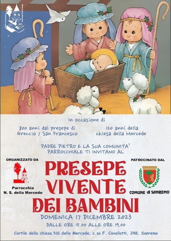 Mancano pochi giorni a Natale e a Sanremo sarà possibile assistere ad un evento speciale. Negli spazi della parrocchia nostra Signore della Mercede, nel quartiere San Martino, le bambine e i bambini dei corsi catechismo animeranno il presepe vivente. Con i costumi tipici, nel piccolo villaggio ricreato appositamente, verranno rappresentate scene di vita comune ai tempi di Gesù e la Natività.