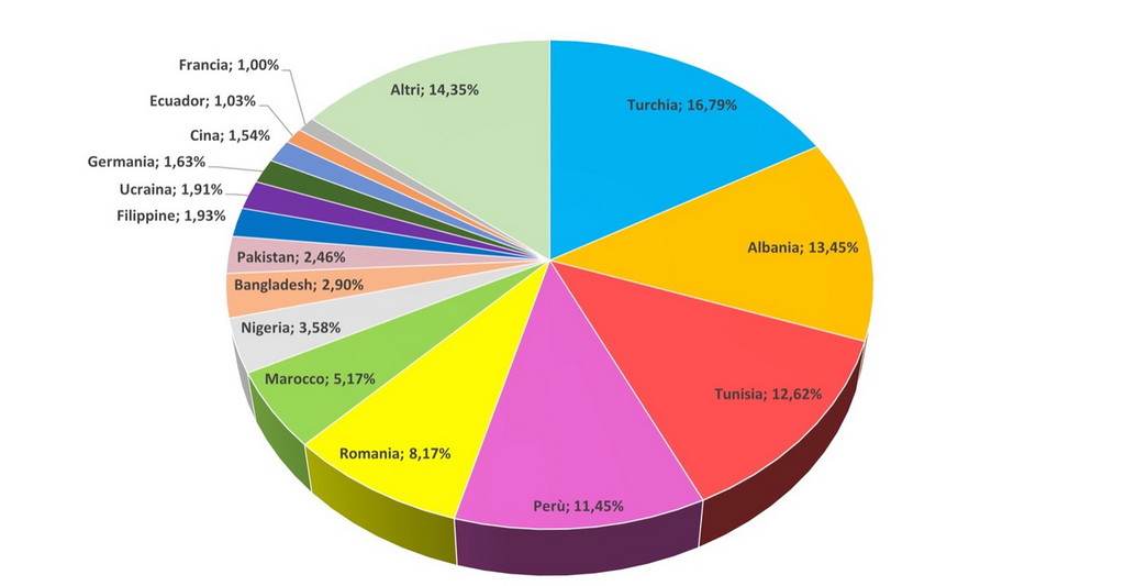 La popolazione straniera nel Capoluogo rappresenta il 15% rispetto al totale dei residenti. Questo l’ordine di grandezza delle comunità presenti in base al Paese d’origine: Turchia (16,79%); Albania (13,45%); Tunisia (12,62%); Perù (11,45%); Romania (8,17%); Marocco (5,17%); Nigeria (3,58%); Bangladesh (2,90%); Pakistan (2,46%); Filippine (1,93%); Ucraina (1,91%); Germania (1,63%); Cina (1,54%); Ecuador (1,03%); Francia (1%), Altri Paesi (14,35%).