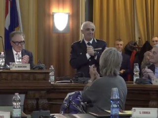 Tutti in piedi in consiglio comunale per salutare il pensionamento di Claudio Frattarola, comandante della Polizia Locale di Sanremo e in servizio al comando matuziano per 35 anni. Entrato con il ruolo di “vice” nel 1988, dal 1997 ha assunto la guida fino a oggi.