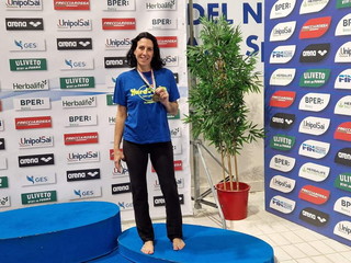 Spiegano dalla società sportiva: “Che dire… la nostra Sabrina, è scesa in vasca per disputare le gare nelle discipline dei 100 e 50 dorso, e conquistando una medaglia in ogni specialità: bronzo nei 100mt dorso, migliorando però il suo tempo e scendendo ad 01:14,65 e un fantastico oro, e quindi titolo Italiano, nei 50 dorso con il tempo di 00:34,70. Ma il momento è stato reso ancora più speciale, per la nostra Capo Coach, dalla partecipazione, per la prima volta ai Campionati Nazionali, di un suo atleta. Gabriele Vaccaro classe 1989, ex atleta pallanuotista, da questa stagione in forza alla Bordighera Nuoto, dopo anni di fermo attività, si è cimentato nei 50 e 100 m stile libero, ottenendo ottime prestazioni e piazzamenti, con il tempo di 01:15,00 nei 100 m e 00:33,09 nei 50 m.