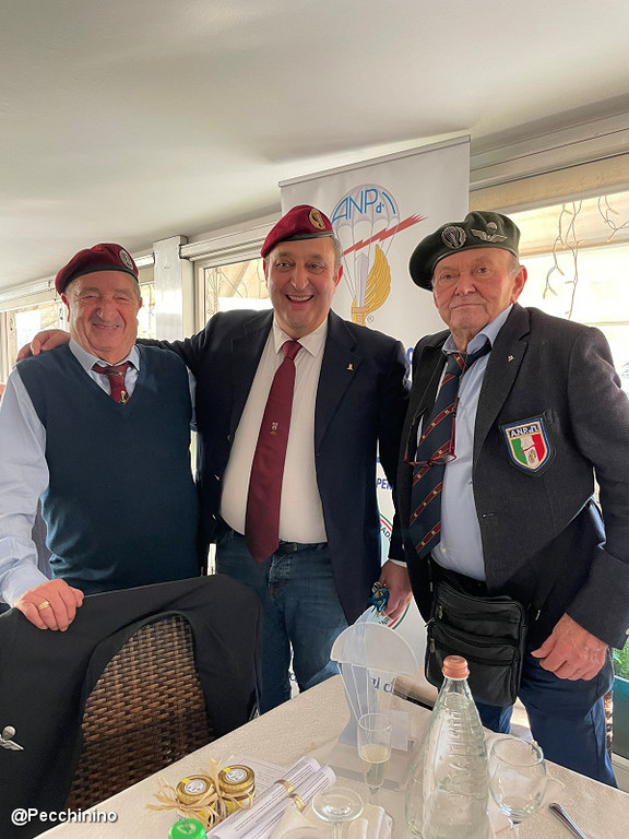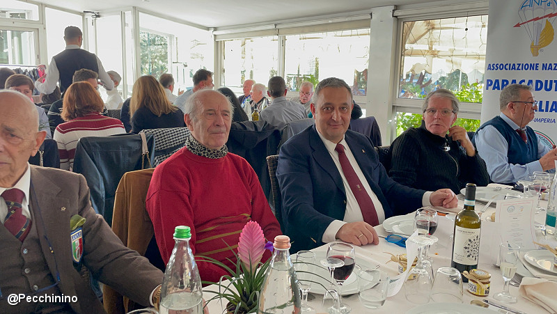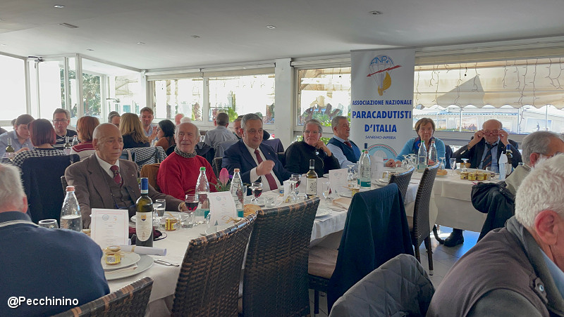 Tra gli ospiti presenti, l’Assessore Mauro Menozzi e il segretario ANCR (Ass.ne Naz.le Caduti e Reduci Uff. ONMRI Roberto Pecchinino). Per il Presidente Marco Wessel, il pranzo degli Auguri, è stata l’occasione per consegnare alcuni riconoscimenti ai soci ANPd’I, e il nuovo crest all’assessore Mauro Menozzi. A tutti i soci presenti, ha consegnato alcuni omaggi ed ha ricordato con queste parole: “essere iscritti all’associazione paracadutisti non significa soltanto partecipare ai pranzi o apericena, ma valorizzare lo spirito associativo, con altruismo e umiltà dedicando una parte del proprio tempo al servizio umanitario, e in questo particolare periodo cercare di aiutare i meno fortunati. Per noi 'paracadutisti' non significa soltanto partecipazione ma anche 'amor di Patria'."
