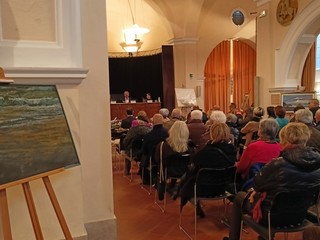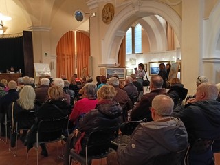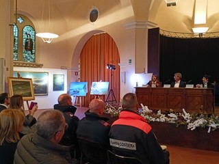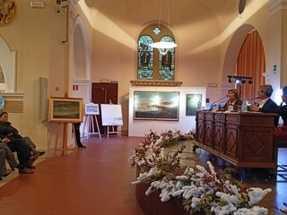 Gremita l'ex chiesa Anglicana nella città delle palme in occasione dell'inaugurazione della mostra “Un secolo di marine a Bordighera”, a cura dell’Archivio Balbo, avvenuta oggi pomeriggio alla presenza di autorità civili e militari.