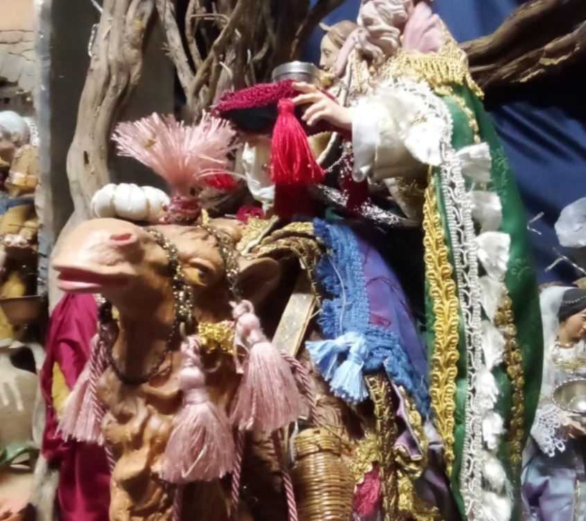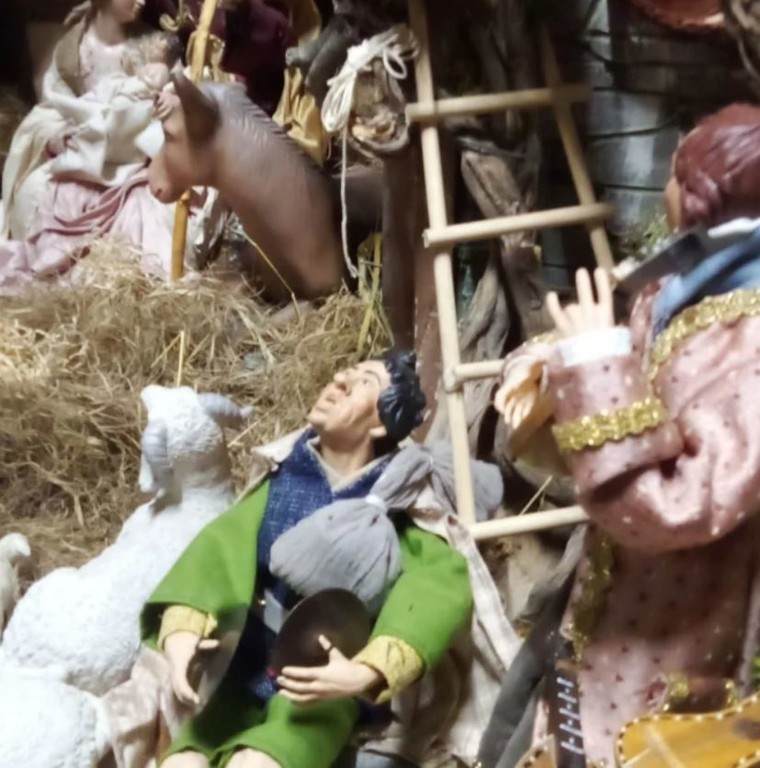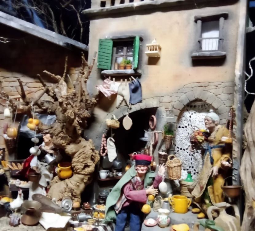 "Una scena di vita campestre che trasporta lo spettatore nei tempi passati...dalle scene quotidiane del frantoio e della raccolta delle olive, passando alle donne che filano la lana e lavorano il macramè al tombolo. Suonatori e zampognari accompagnano lo sguardo verso il fulcro della Natività, circondati dagli osti e dai venditori ed ascoltando in lontananza l'eco dell' arrivo del maestoso corteo dei Magi.