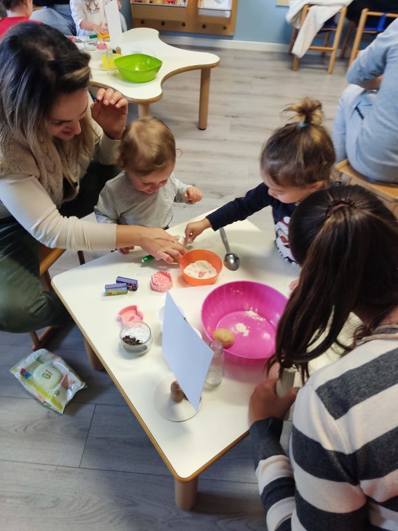 Spiegano dal Nido: “Dopo una breve riunione, per condividere i progetti futuri, i genitori, col prezioso aiuto di ‘piccoli pasticceri’ hanno preso parte al laboratorio proposto, iniziando a creare l’impasto con i vari ingredienti a disposizione: i bambini hanno subito messo ‘le mani in pasta’ realizzando insieme i dolcissimi biscotti di Natale.