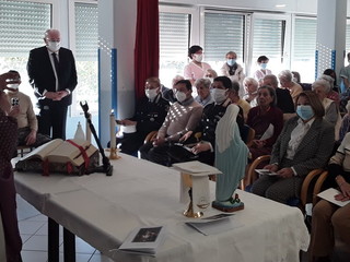 Durante l’offertorio sono stati portati all’altare, da alcuni operatori della Casa, il pane, il vino, i fiori come espressione di gioia e di festa, le chiavi come simbolo dell’accoglienza e dell’apertura del cuore della Casa nei confronti degli Ospiti e della riapertura dopo lunghi mesi di chiusura per preservare la salute degli Ospiti e i riconoscimenti dell’attività agli operatori: diplomi e spille da appuntare alla divisa.