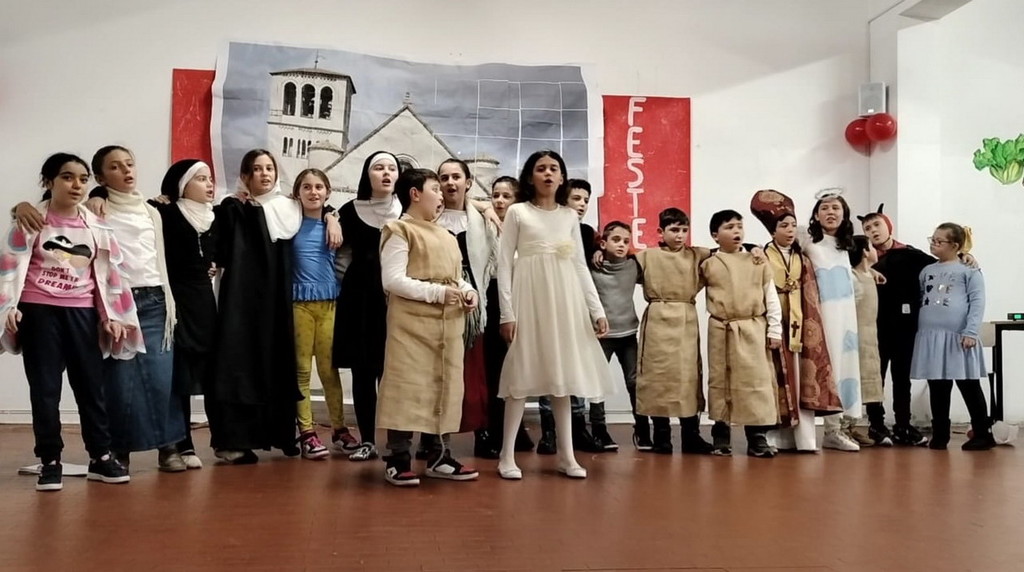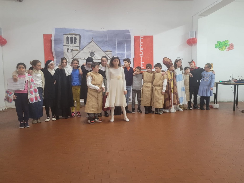 Giovedì 21 dicembre 2023 i bambini della classe 4 A si sono esibiti nel musical religioso francescano 'Forza venite gente' interpretando i vari personaggi, tra cui San Francesco d'Assisi e Santa Chiara.