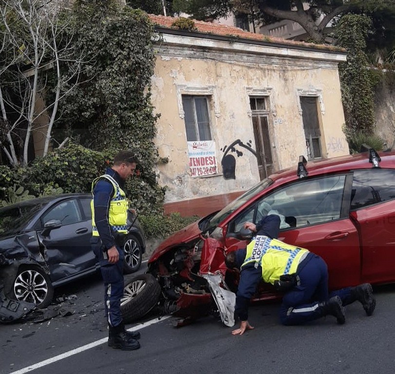 Sanremo: schianto frontale sull'Aurelia a Capo Nero, due veicoli distrutti ma conducenti senza gravi ferite (Foto)