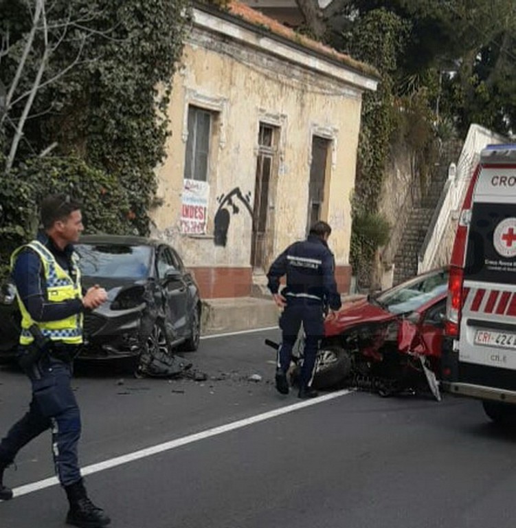 Terribile schianto, nel giorno di Natale intorno all'ora di pranzo in corso Marconi. I residenti della zona sono stati sorpresi dallo scontro di due autovetture che si sono scontrate frontalmente nei pressi di Capo Nero.