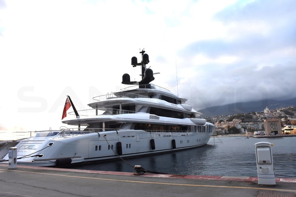 E’ arrivato a Portosole di Sanremo il super yacht ‘Roe’, imbarcazione firmata da Yacht Turquoise, di ben 74 metri di lunghezza con al seguito un tender da 27 metri.