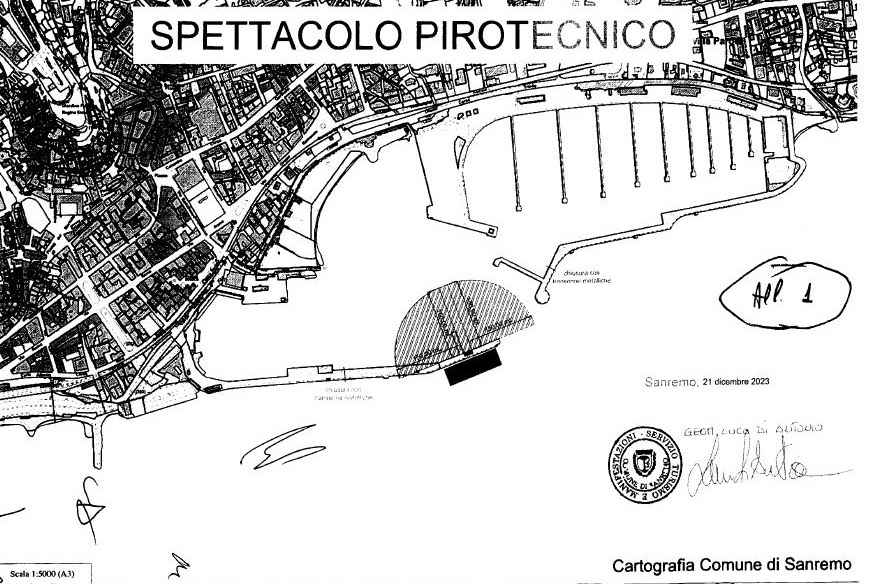 Dalle 22 di domani, al termine dello spettacolo pirotecnico, saranno anche vietati, salvo espressa autorizzazione dell’Autorità Marittima, il transito, la sosta, l’ancoraggio e l’ormeggio di unità di qualsiasi tipo e stazza ed ogni altra attività in genere nello specchio acqueo interdetto e ricompreso nell’area, compreso nella circonferenza dal raggio pari a 150 metri dagli estremi dell’area di sparo.