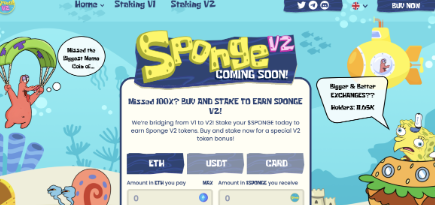 $SPONGE V2 è un aggiornamento della meme coin originale $SPONGE. Ha una tokenomica diversa dal token V1, ma per il resto è molto simile. Entrambi i token sono basati sul personaggio di Spongebob Squarepants ed entrambi i token sono token ERC-20 che effettuano transazioni su Ethereum.