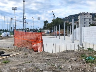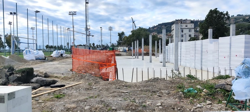 Proseguono i lavori per la creazione della ‘cittadella dello sport’ di Pian di Poma a Sanremo. Mentre cresce l’attesa per la ripresa dei lavori al palazzetto e da tempo sono terminati quelli del campo a 11, in queste ore sono concluse le operazioni di posa e sistemazione del manto erboso del campo a 9.