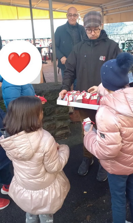 Sabato mattina nella splendida cornice del Belvedere Tourves si è svolta la seconda edizione della Befana Rossonera organizzata dal Milan Club Perinaldo Franco Baresi in collaborazione con il bar ristorante Au Gaggian. Il Club ha distribuito a tutti i bambini di Perinaldo un piccolo dono preparato dai ragazzi della SPES APS associazione che dal 1996 si occupa di ragazzi con handicap.