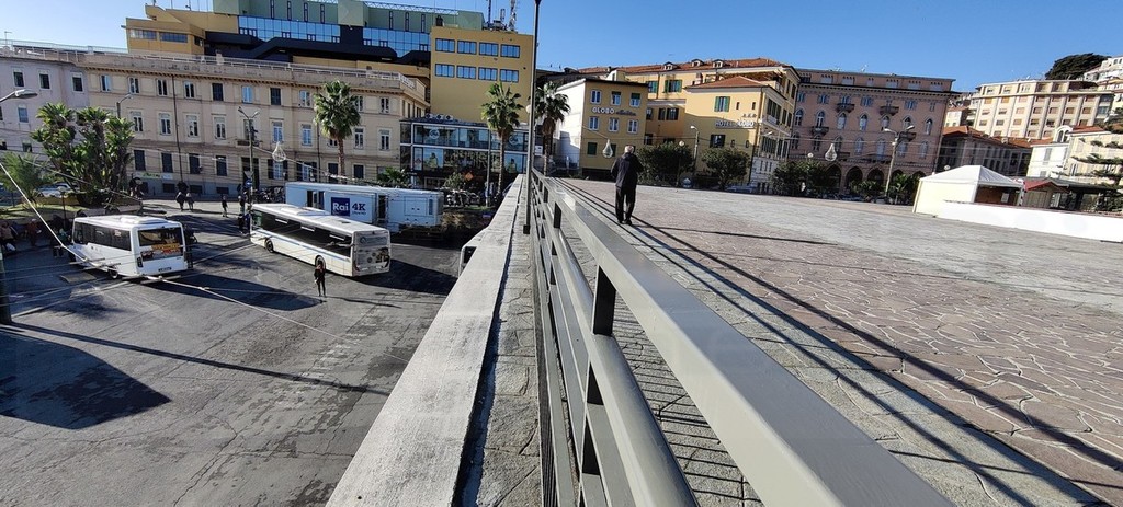 Sono terminati i lavori di ripristino dei cornicioni e degli intonaci della soletta dell'autostazione sotto il solettone di piazza Colombo a Sanremo.