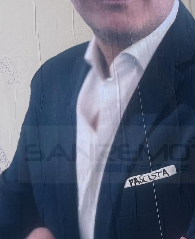 Prima dello strappo al manifesto è stato scritto su una parte del manifesto la dicitura ‘fascista’ e la ‘A’ riconducibile agli anarchici