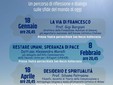 Il primo appuntamento sarà il 18 gennaio alle 20.45 presso il teatro parrocchiale di San Rocco. Per l'occasione, il professor Gigi Borgiani, direttore della Fondazione Auxilium di Genova, già segretario nazionale dell'Azione Cattolica Italiana, parlerà de "La via di Francesco". L'8 febbraio, sempre alle 20.45 presso il teatro parrocchiale di San Rocco, la dottoressa Alessandra Morelli, già delegata dell'Alto Commissariato delle Nazioni Unite per i Rifugiati (UNHCR) interverrà su "Restare umani, speranza di pace".
