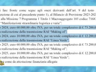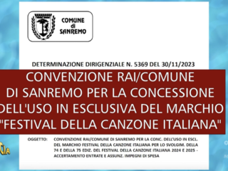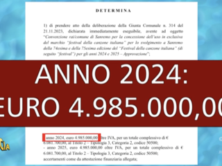 ‘Striscia’ ha pubblicato i documenti pubblicati sul sito del Comune che riportano alcune delle cifre contenute nella convenzione (il cui testo sembra introvabile) tra Comune e Rai: 5 milioni di euro a Palazzo Bellevue, di cui 2,3 vanno al Teatro Ariston per l’affitto. Inoltre sono state mostrate le cifre previste per la partecipazione di Sanremo ad alcune delle trasmissione proposte dalla Rai, su tutte Linea Verde e lo speciale backstage del Festival di Sanremo.