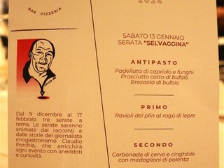 Questo il menù: Frandura di Montalto Ligure (Torta di patate salata tipica della Valle Argentina) Gran Pistau di Pigna (piatto tipico della Valle Nervia) Pescato locale con Carciofi di Sanremo e Bunet.