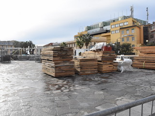 Il ‘carrozzone’ del Festival è in allestimento e i lavori all’esterno subiranno un breve stop solo mercoledì, quando è previsto il passaggio di una forte perturbazione, poi ci sarà il via libera di Giove pluvio, visto che le previsioni per la fine del mese sono buone.