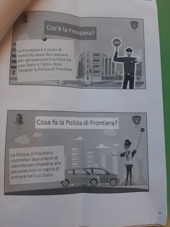 La risposta dei bambini a questa iniziativa non poteva che essere di grande entusiasmo e partecipazione; gli agenti, inizialmente, hanno mostrato agli alunni delle slides, spiegando che cosa sia e di cosa si occupi la Polizia di Frontiera, sottolineando anche l'importanza, in un territorio come il nostro, della conoscenza della lingua del vicino per una serena convivenza; i bambini hanno seguito con interesse e attenzione, interagendo con naturalezza e spontaneità. Inoltre, con l'aiuto degli agenti, gli alunni sono saliti a turno sull'autovettura di servizio, all'interno della quale hanno potuto verificare personalmente l’uso della radio e delle apparecchiature installate a bordo. Le iniziative come quella di ieri sono senza dubbio uno strumento valido e utile per far conoscere anche ai bambini più piccoli le attività e il ruolo delle Forze dell’Ordine, nonché l'importanza della loro presenza quotidiana sul territorio”.