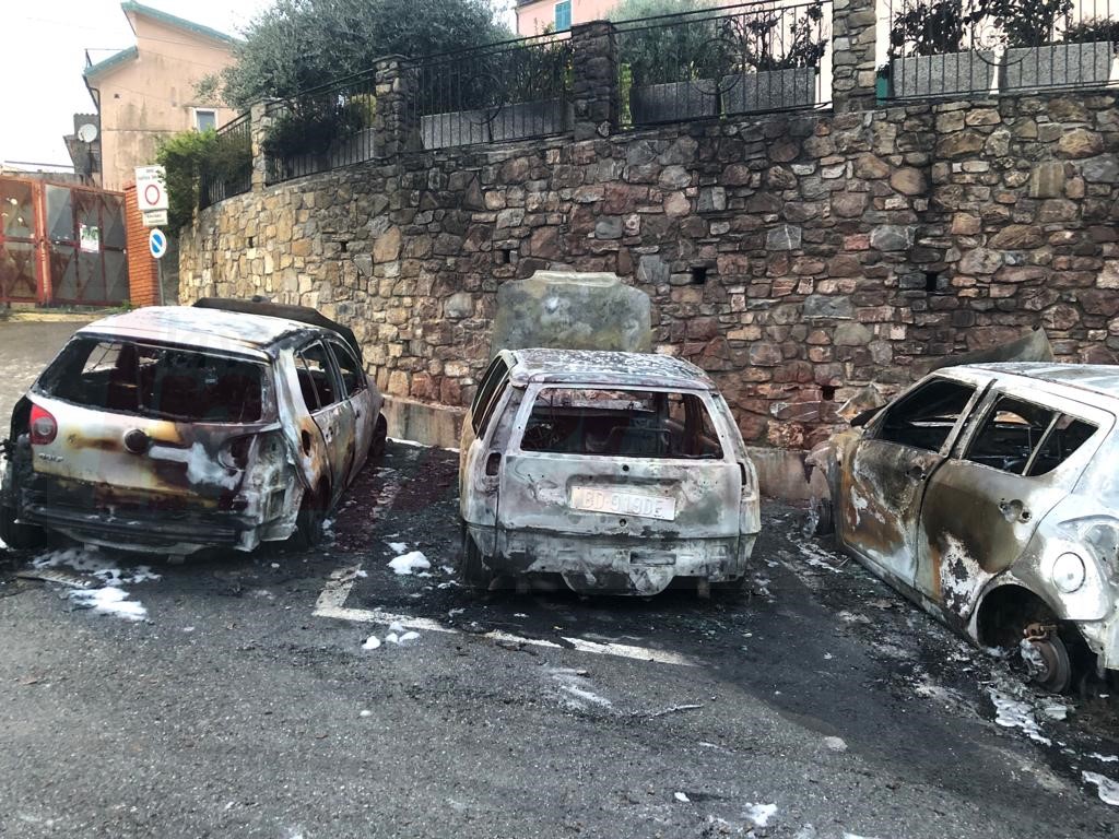 Sei auto sono andate completamente distrutte e una settima solo parzialmente, poco dopo la mezzanotte sopra il campo sportivo di Costarainera.