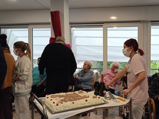 Grande festa a Casa Rachele a Vallecrosia per il compimento dei 27 anni della struttura per anziani. Oggi pomeriggio, i 78 ospiti, i loro parenti e il personale della casa di riposo si sono riuniti per festeggiare insieme il traguardo con brindisi e taglio della torta di compleanno. Per l'occasione era presente anche l'assessore di Vallecrosia Patrizia Biancheri.