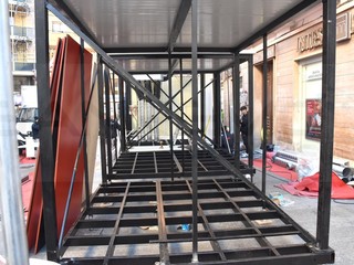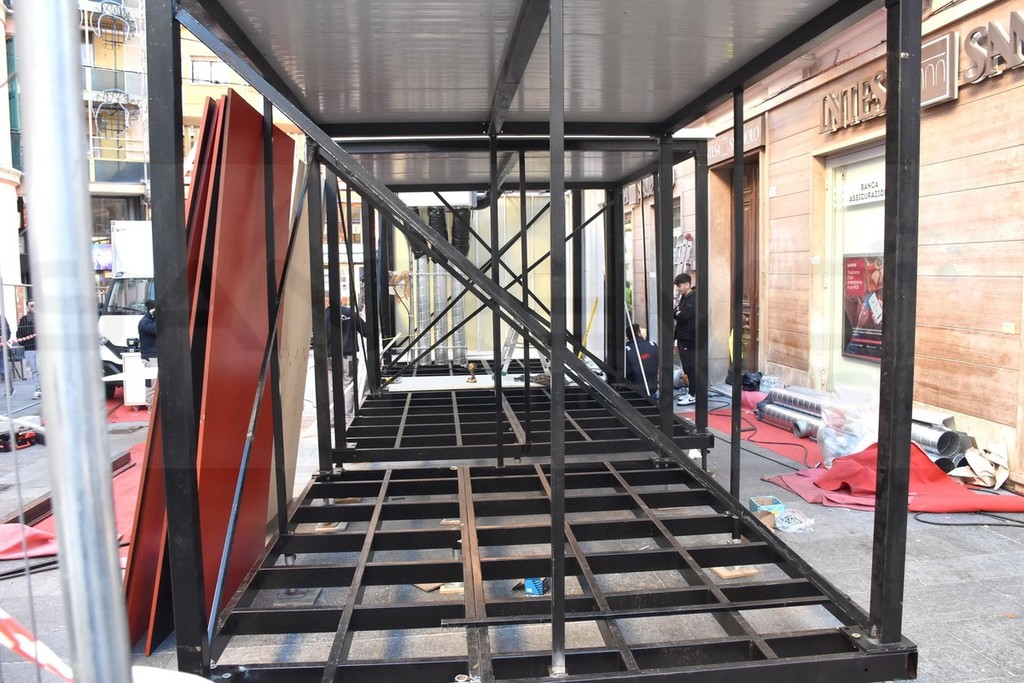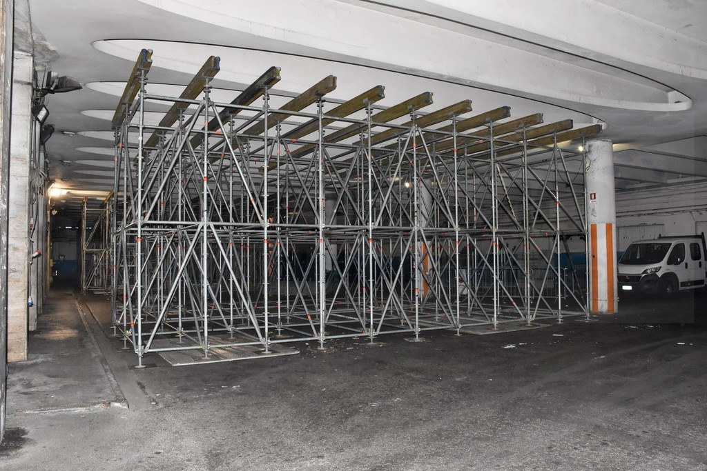 Anche i lavori di sostegno all’interno del parcheggio sotto il solettone sono terminati e le strutture sono pronte a contenere il peso del palco e del resto che viene montato al di sopra. Intanto è stato confermato lo spostamento dei fuochi piromusicali, dal lunedì alla domenica sera.