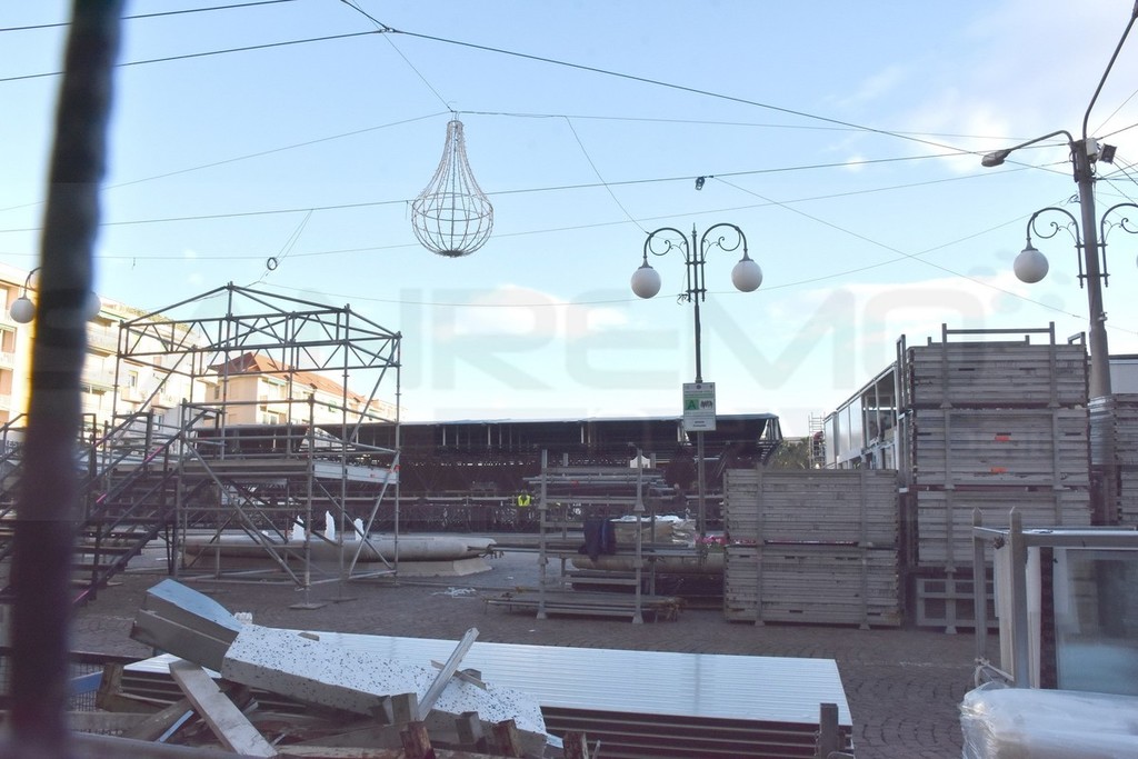 Ieri parte dell’enorme palco di piazza Colombo è stato allestito e oggi dovrebbe essere innalzata la parte superiore, che darà la sensazione di grandezza a chi passerà dal centro della città dei fiori. Mentre in piazza Borea d’Olmo si costruiscono i diversi stand che ospiteranno Radio Due ed altri, lavoro certosino per l’allestimento del ‘glass’ di ‘Viva Rai Due’ che ospiterà la trasmissione di Fiorello, al mattino del lunedì e la notte dopo il Festival nelle altre serate della kermesse canora matuziana.
