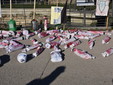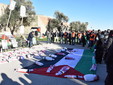 Tante bandiere palestinesi ma anche quelle di Pace mentre a terra tanti ‘fagotti’ per rappresentare i circa 7.000 bambini morti in questo periodo di crisi tra Palestina e Israele.
