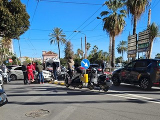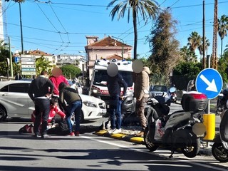 Sanremo: svolta irregolare tra corso Imperatrice e piazza Battisti, scontro auto-scooter (Foto)