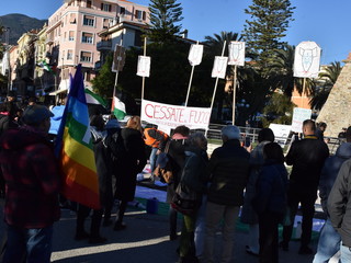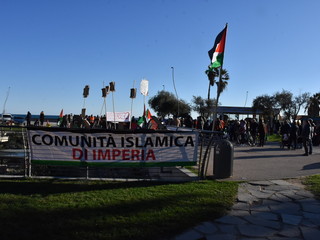 Alla presenza di circa 200 persone si è svolta, oggi pomeriggio in Pian di Nave a Sanremo, la manifestazione per la pace organizzata dal comitato locale “Pro-Palestina”.