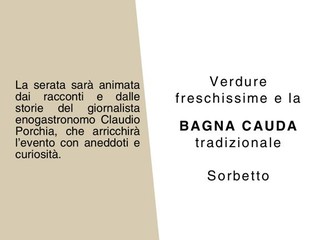 Un’occasione ideale per immergersi nella cultura culinaria piemontese e scoprire i sapori autentici di questa prelibatezza. Come sempre l'atmosfera sarà conviviale e rilassata, perfetta per stare in compagnia e godersi una serata in cui il cibo e la cultura si fondono.