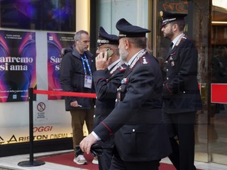 Sopralluogo dei Carabinieri, questa mattina al Teatro Ariston di Sanremo, in attesa della kermesse canora matuziana, per la quale in questi giorni si stanno svolgendo le prove.