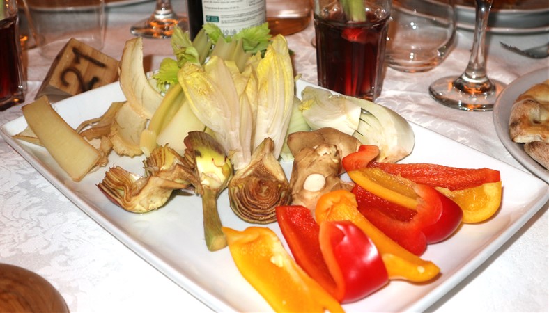 Questo il menù: Frandura di Montalto Ligure (Torta di patate salata tipica della Valle Argentina) Gran Pistau di Pigna (piatto tipico della Valle Nervia) Pescato locale con Carciofi di Sanremo e Bunet.