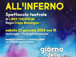 Inoltre le classi terze della scuola secondaria di primo grado dei plessi di Roverino e Ventimiglia alta hanno partecipato allo spettacolo teatrale programmato dal Comune di Ventimiglia dal titolo 'Anche noi all’Inferno'. La rappresentazione è stata realizzata dalla Compagnia 'Libertheatrum' del Dott.Diego Marangon.