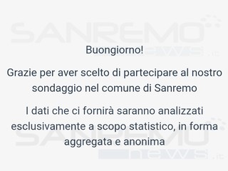 Come dicevamo è ancora in corso e vedremo se, a breve, sarà pubblicato regolarmente. Abbiamo partecipato al sondaggio, si via web che al telefono, per capire le domande che vengono poste. L’approccio è ingannevole, visto che viene pubblicizzato con post e annunci che parlano della ‘Qualità della vita’ e di come si vive a Sanremo. Ma, invece, una volta entrati (o dato l'ok al telefono), ci si trova di fronte ad un vero e proprio sondaggio elettorale. All’ingresso sul sito viene mantenuto l’anonimato e si parte con le domande.
