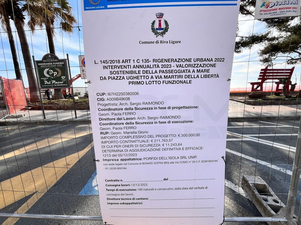Sono partiti i lavori di restyling della passeggiata a mare tra piazza Ughetto e via Martiri della Libertà a Riva Ligure. Si tratta di un intervento per la valorizzazione sostenibile del fronte mare che viene eseguito grazie ad un finanziamento da 300mila euro della Regione Liguria.