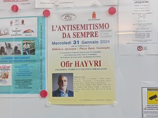 Un convegno dal titolo 'L’antisemitismo da sempre' con lo storico israeliano Ofir Hayvri è andato in scena oggi pomeriggio nella biblioteca Aprosiana a Ventimiglia.