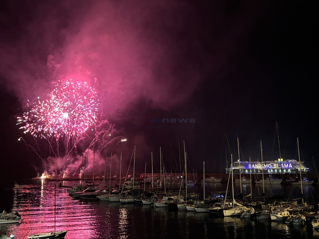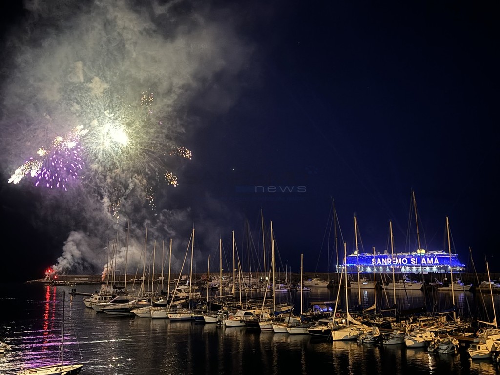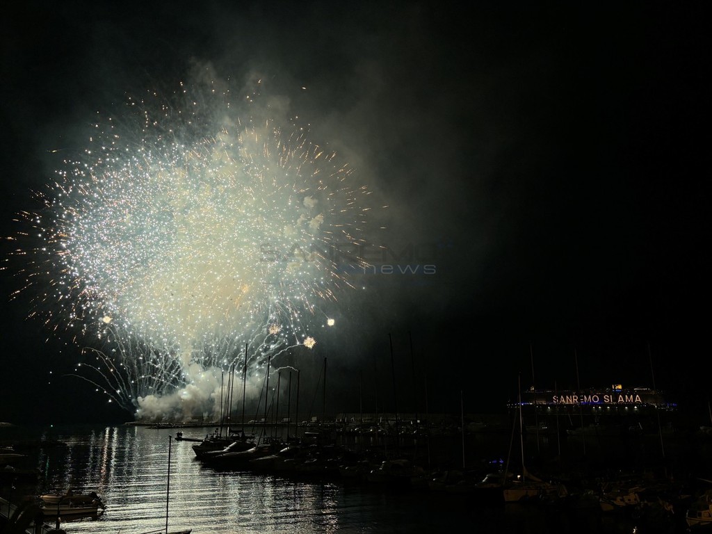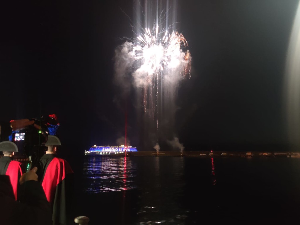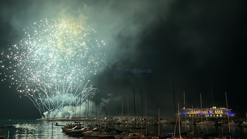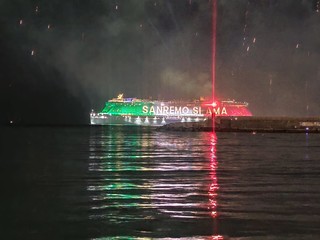È stato uno spettacolo completo, quello a cui abbiamo assistito questa sera. Prima i giochi di luce dalla Costa Smeralda in rada di fronte alla città e, quindi, il via ai fuochi e alla musica sul porto, di fronte a migliaia di persone. Alla fine la novità di quest’anno, con i tre fasci di luce lanciati verso il cielo dall’Ariston, dal palco di piazza Colombo e dalla nave.