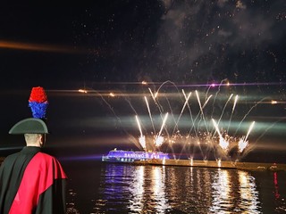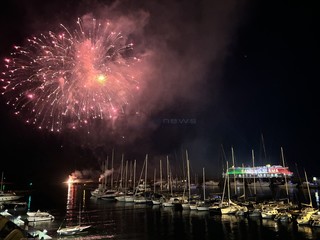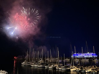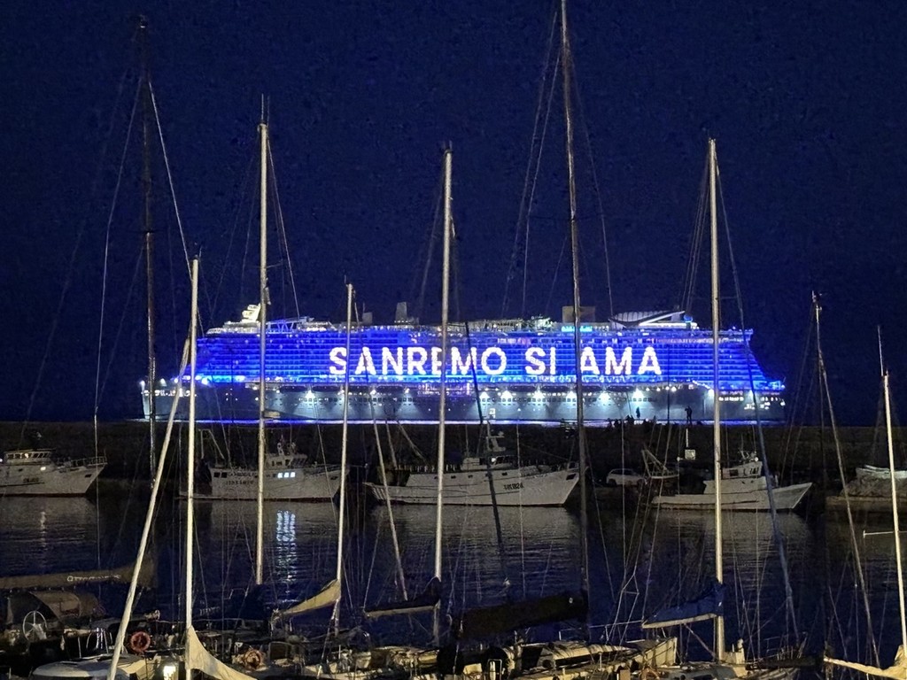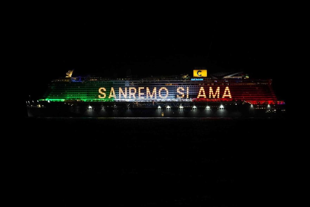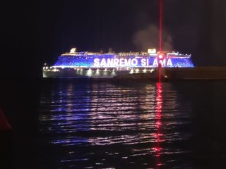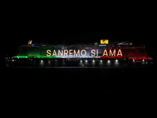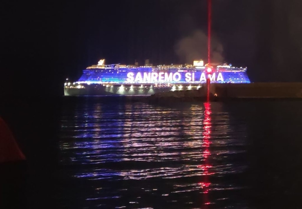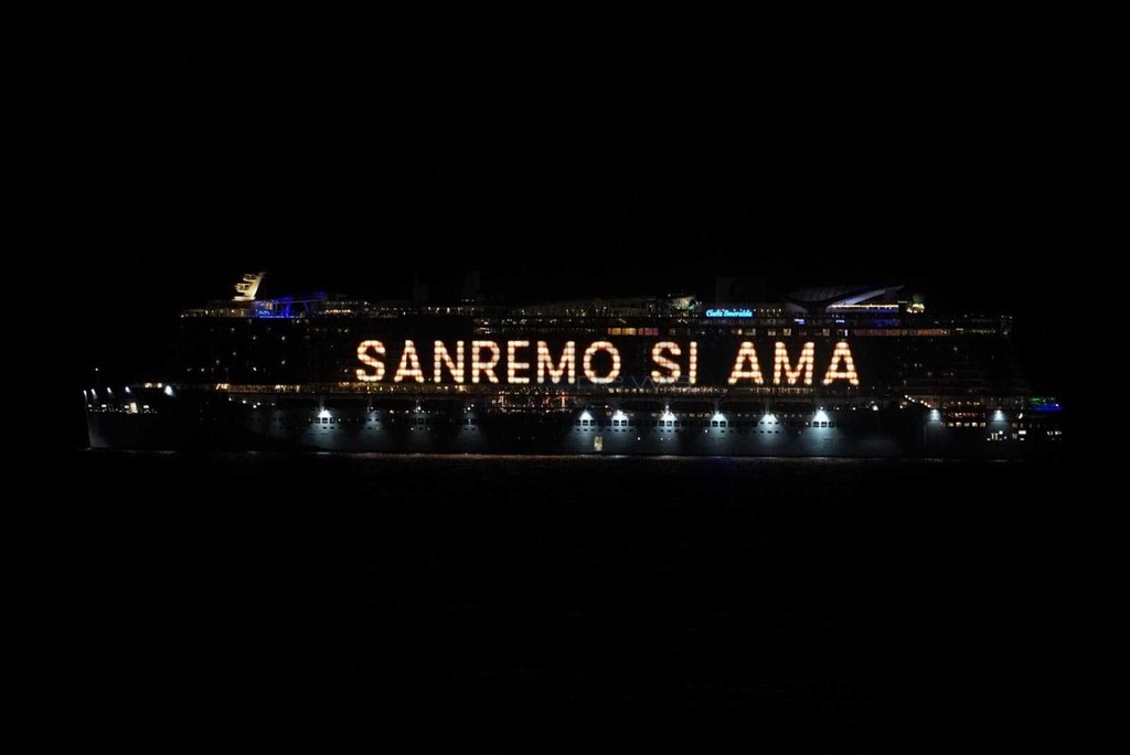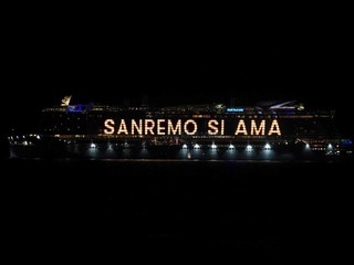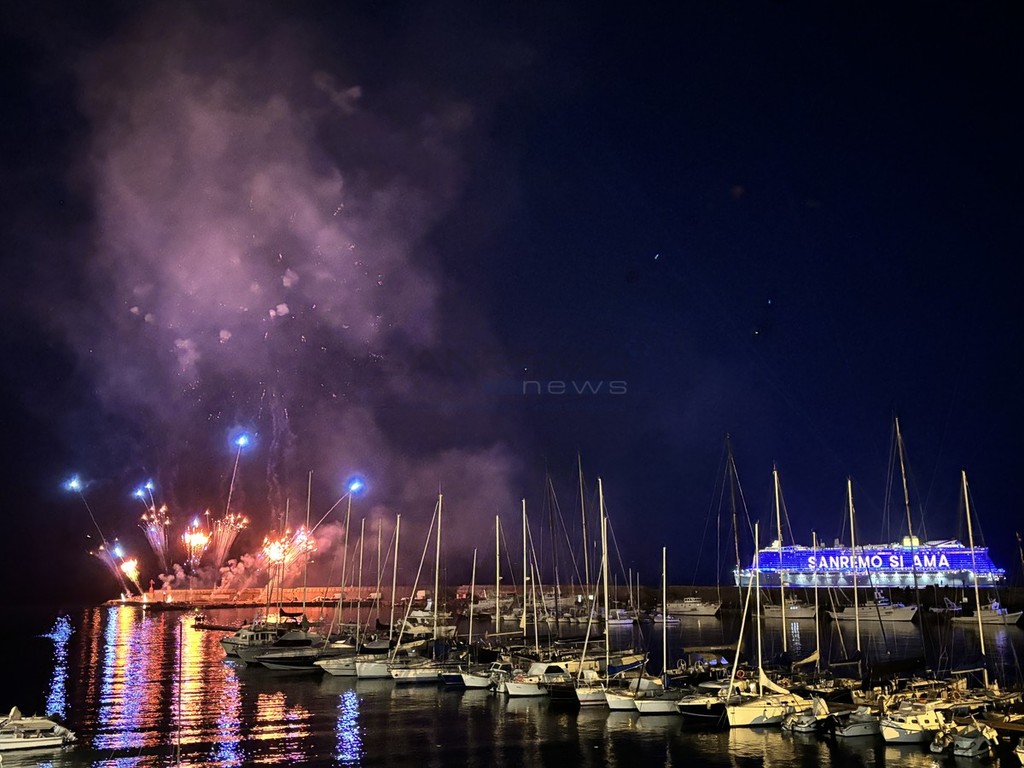 È stato uno spettacolo completo, quello a cui abbiamo assistito questa sera. Prima i giochi di luce dalla Costa Smeralda in rada di fronte alla città e, quindi, il via ai fuochi e alla musica sul porto, di fronte a migliaia di persone. Alla fine la novità di quest’anno, con i tre fasci di luce lanciati verso il cielo dall’Ariston, dal palco di piazza Colombo e dalla nave.