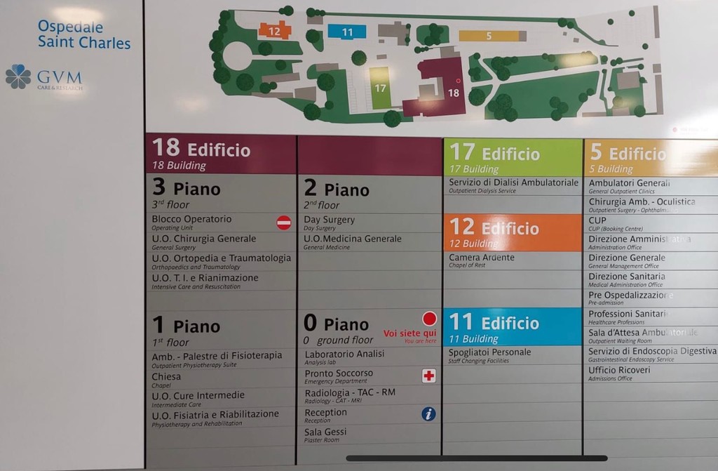 La struttura ospedaliera, passata alla gestione privata GVM Care&Research, prevede al piano 0 un laboratorio analisi, il pronto soccorso, la radiologia-Tac-Rm, la reception e la sala gessi; al primo piano palestre di fisioterapia, la chiesa, U.O. cure intermedie e U.O. fisiatria e riabilitazione; al secondo piano il day surgery e U.O. Medicina generale e al terzo piano il blocco operatorio, U.O. Chirurgia generale, U.O. Ortopedia e Traumatologia, U.O. Terapia intensiva e rianimazione. "Ad oggi sono sei i reparti attivi, 87 i posti letto, tre le sale operatorie di cui una completamente nuova e due già esistenti e ristrutturate" - fa sapere il primo cittadino.