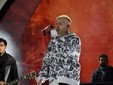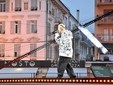 Lazza sul palco di piazza Colombo scalda il pubblico in vista del concerto di questa sera con il sound check.