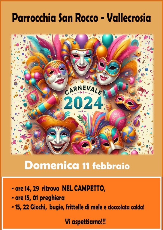 Una festa di Carnevale verrà organizzata dalla parrocchia di San Rocco a Vallecrosia domenica prossima, l'11 febbraio.