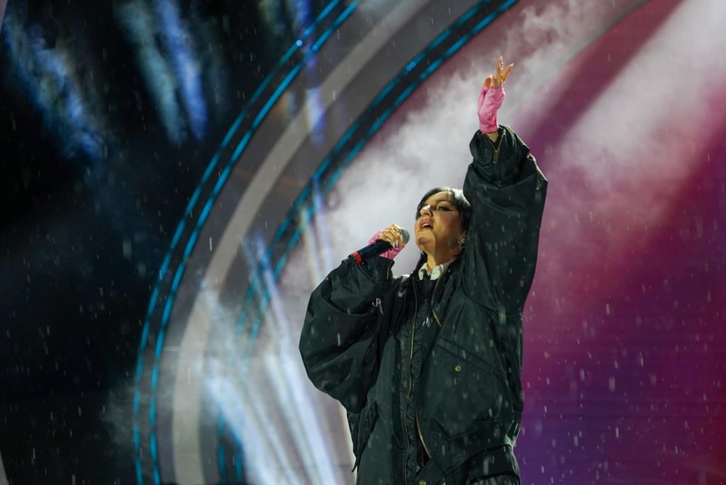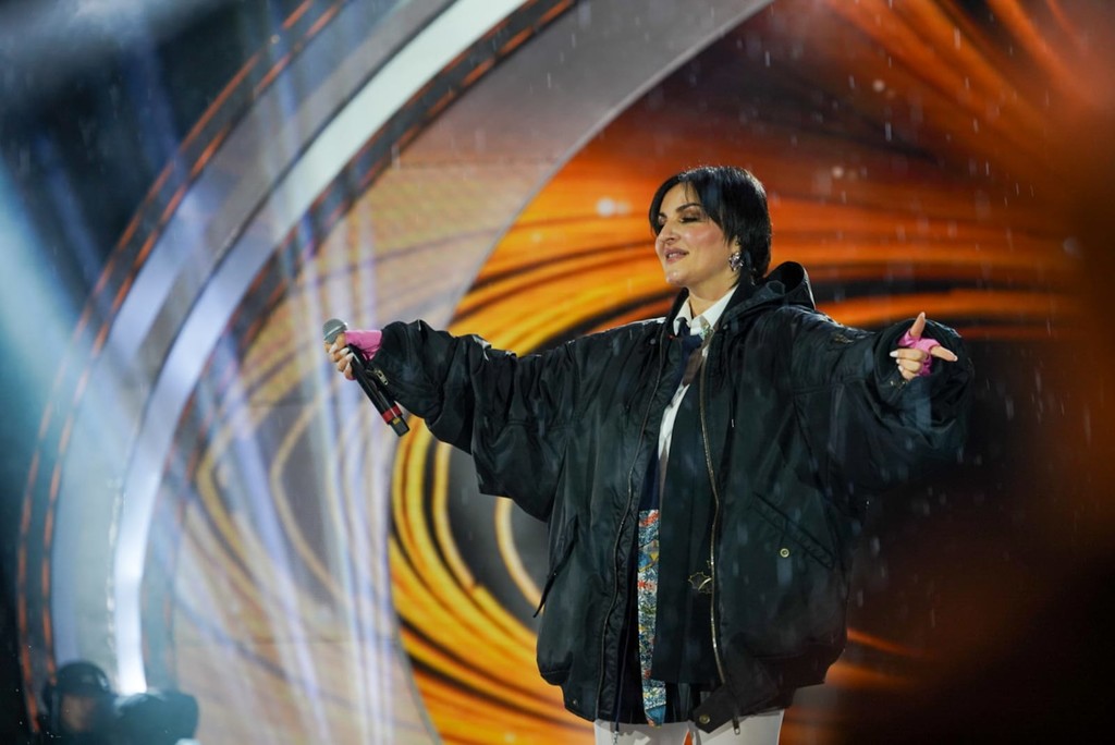 Il concerto all'aperto della cantante sul palco di piazza Colombo non si sarebbe dovuto tenere a causa della pioggia.