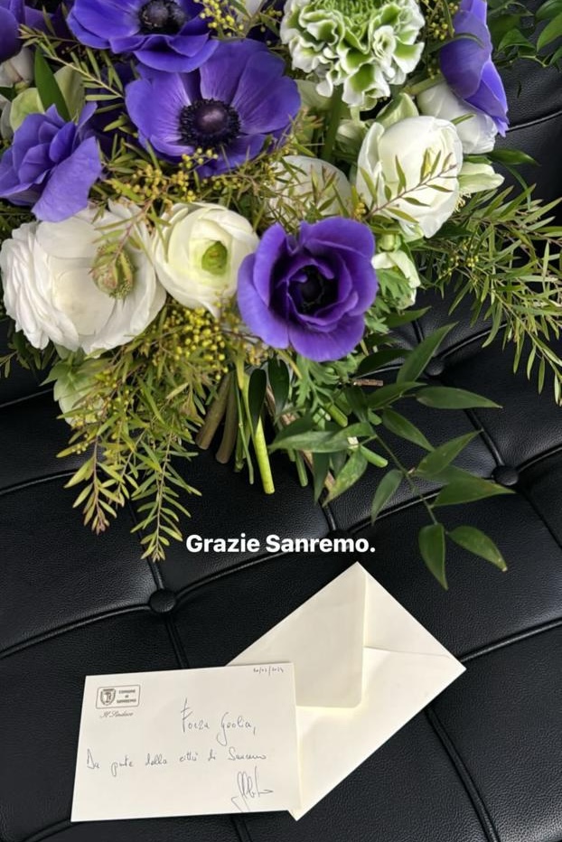 Nel pomeriggio, inoltre, il primo cittadino ha fatto recapitare al cantante napoletano un mazzo di fiori di Sanremo con un messaggio: “Forza Geolier, da parte della città di Sanremo”. E subito il dono è finito tra le storie Instagram del rapper.