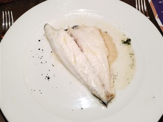 Il secondo piatto: Filetto di orata con vellutata con sedano rapa profumata alla cipolla di Tropea abbinata a Mosca Bianca di Guido Vaida