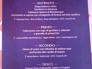Un menù accompagnato da una selezione di vini bianchi di alta qualità provenienti dalla provincia di Asti scelti con grande cura dalla Enoteca Amica di Asti, la prima enoteca italiana aderente a Campagna Amica della Coldiretti.